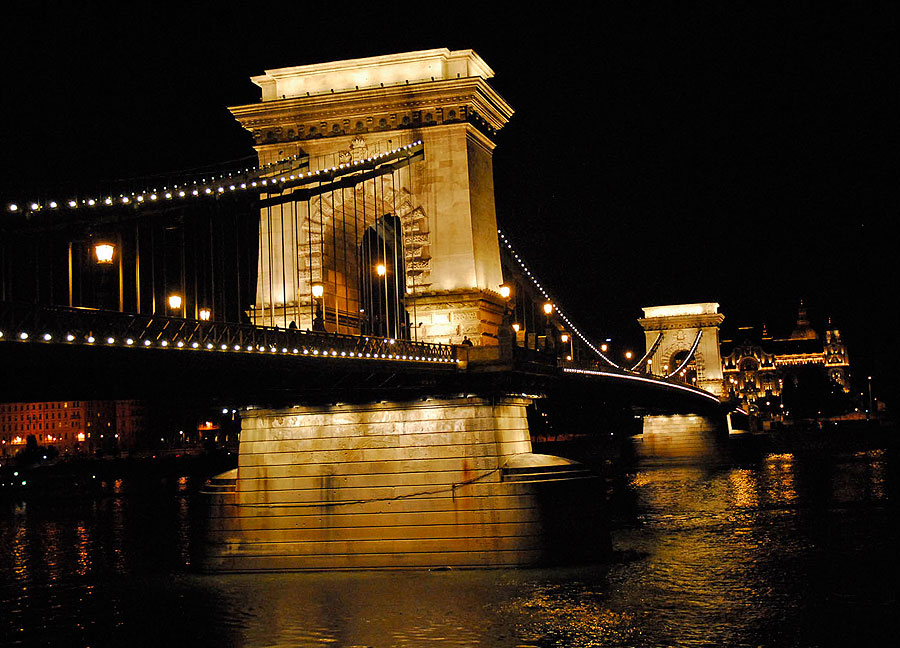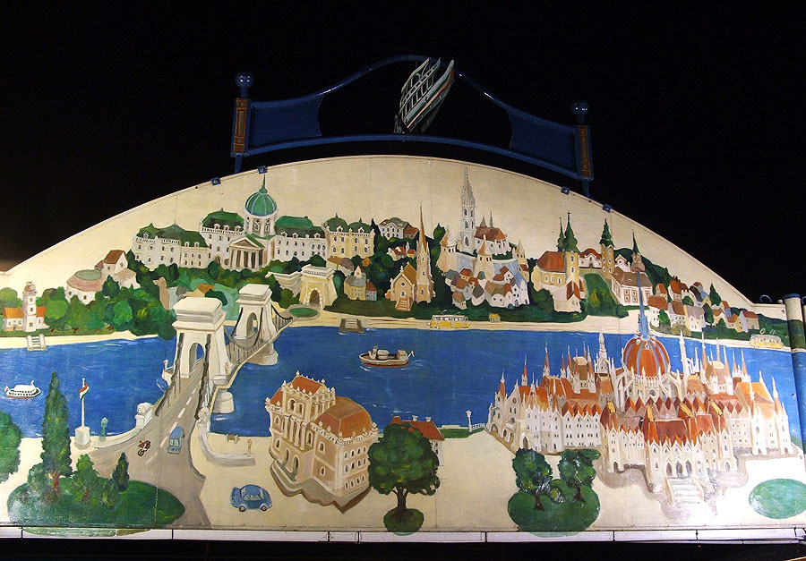 La mayoría de los edificios más famosos y bellos se hallan a las orillas del río: el Parlamento, el Castillo de Buda, la Iglesia de Matías, el Bastión de los Pescadores, el Cerro de Gerardo con la Estatua de la Libertad, Baños Gellért, Palacio de las Artes. Se ve naturalmente los puentes famosos: el de las Cadenas, el de Isabel y el puente de la Libertad.
