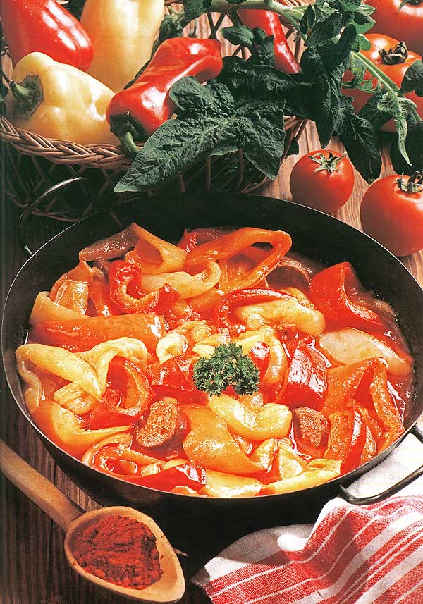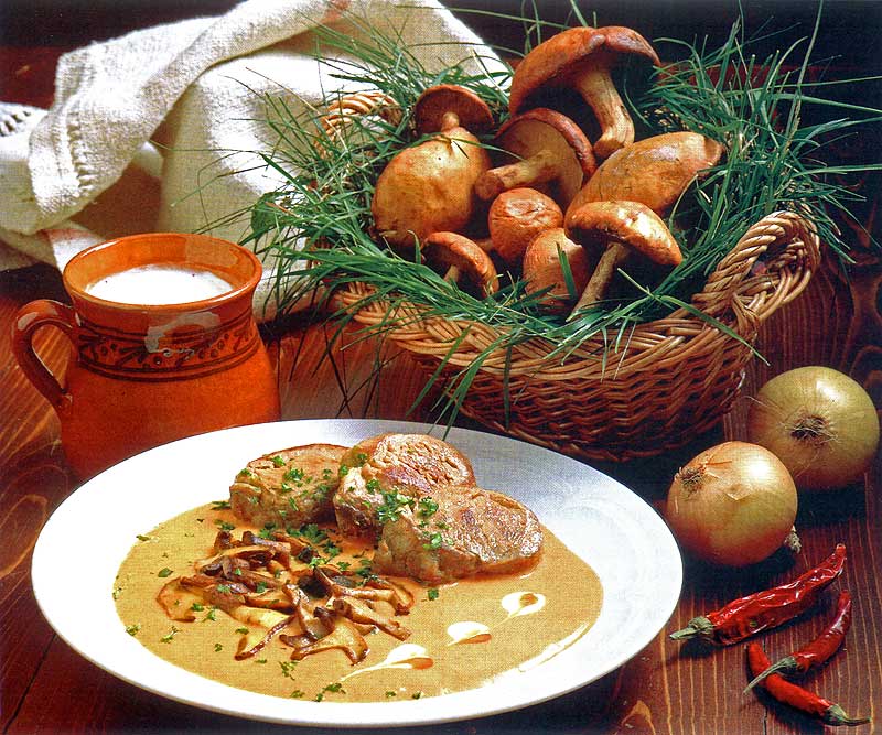 肉料理のソースとして一番代表的 なのはレチョーと言う、 パプリカ、トマト、 玉葱を煮込んだものです。 それから、バコニ・マールターシュと言うソースも家庭・レストランでもよく食べられます。
