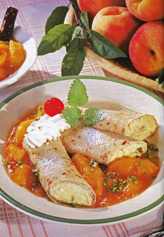 デザートとして多 分一番代表的と 言えるレーテシュはレストランだけでなく、 一般家庭でもよく食べられています。レーテシュとは小麦粉、卵、水等で生地を作り、薄く伸ばしたもので、具を幾層も巻いて、オ ーブンで焼いたものです。具の中身としてはカッテージチーズ、種を取ったサワーチェリー、あるいは味付けされたりんごがポピュラーです。