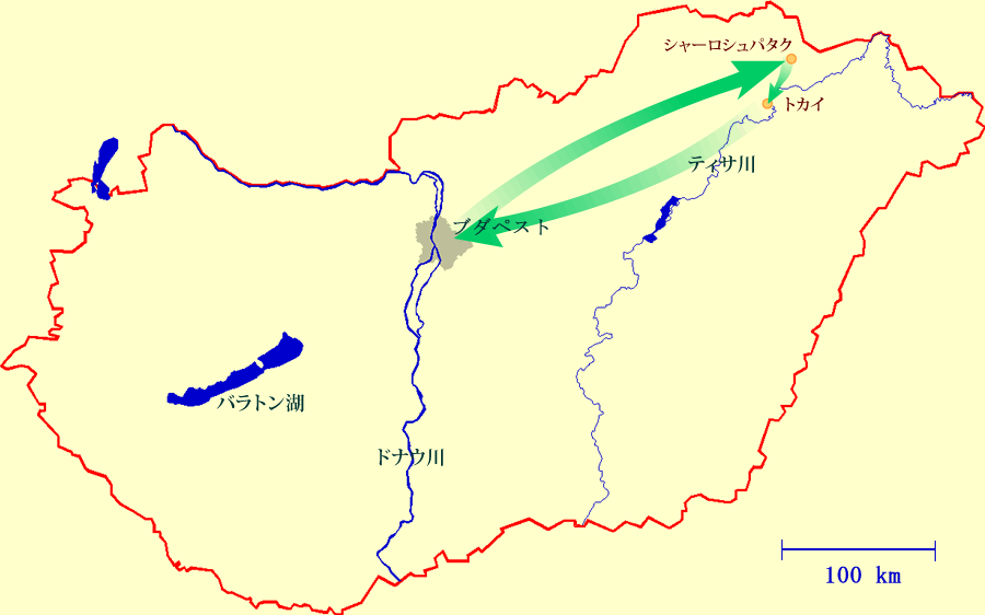 11:30 チサ川とボヅロク川の合流点に位置するトカイ市ヘ移動します。(67km)。