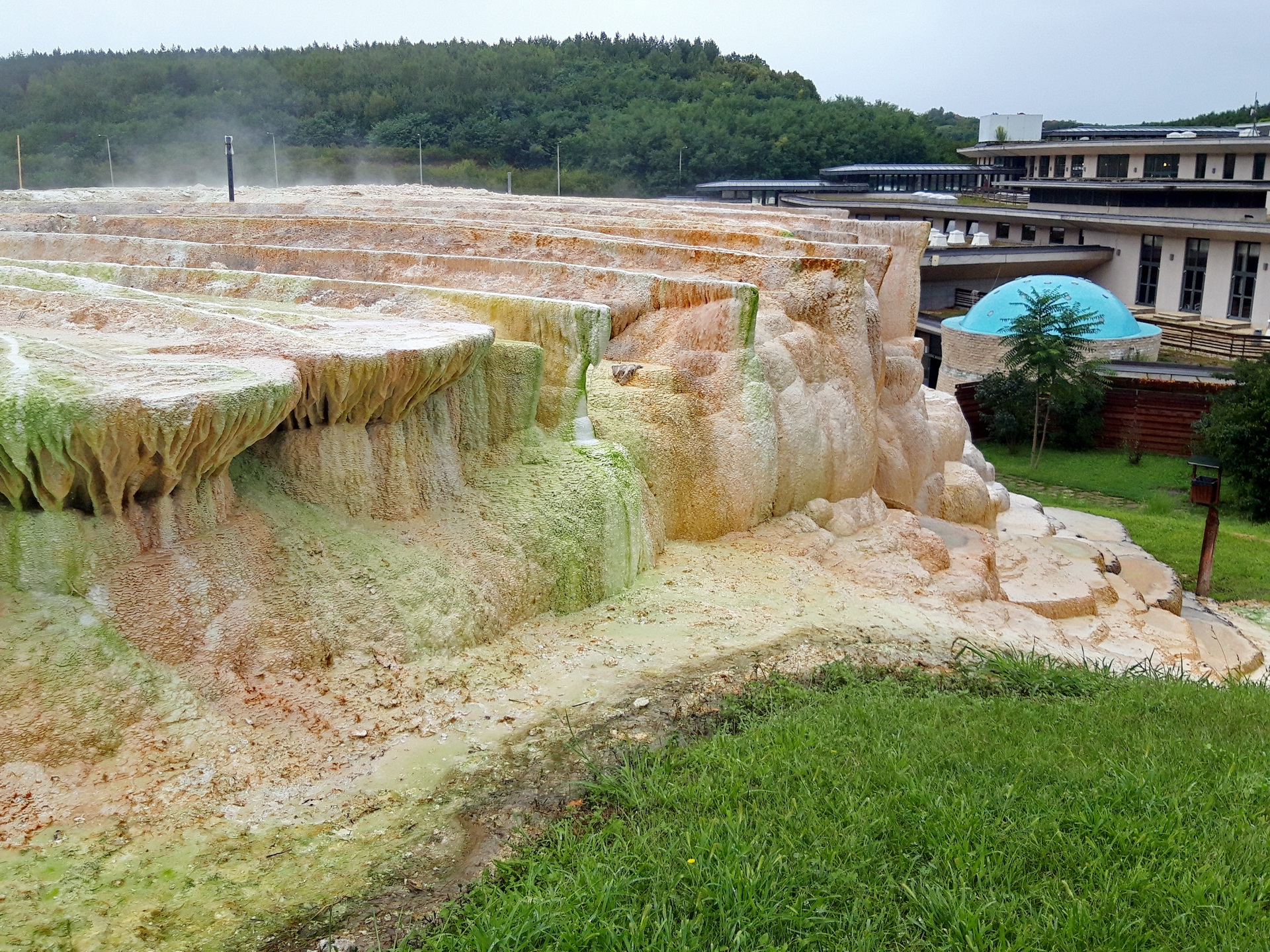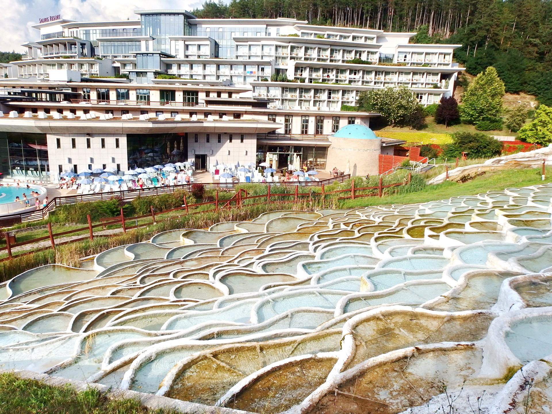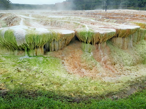 10:00 この村の特徴は源泉から湧出した湯が白い石灰棚を流れる温泉です。ここでSalirisホテル設備を利用して、入浴体験。