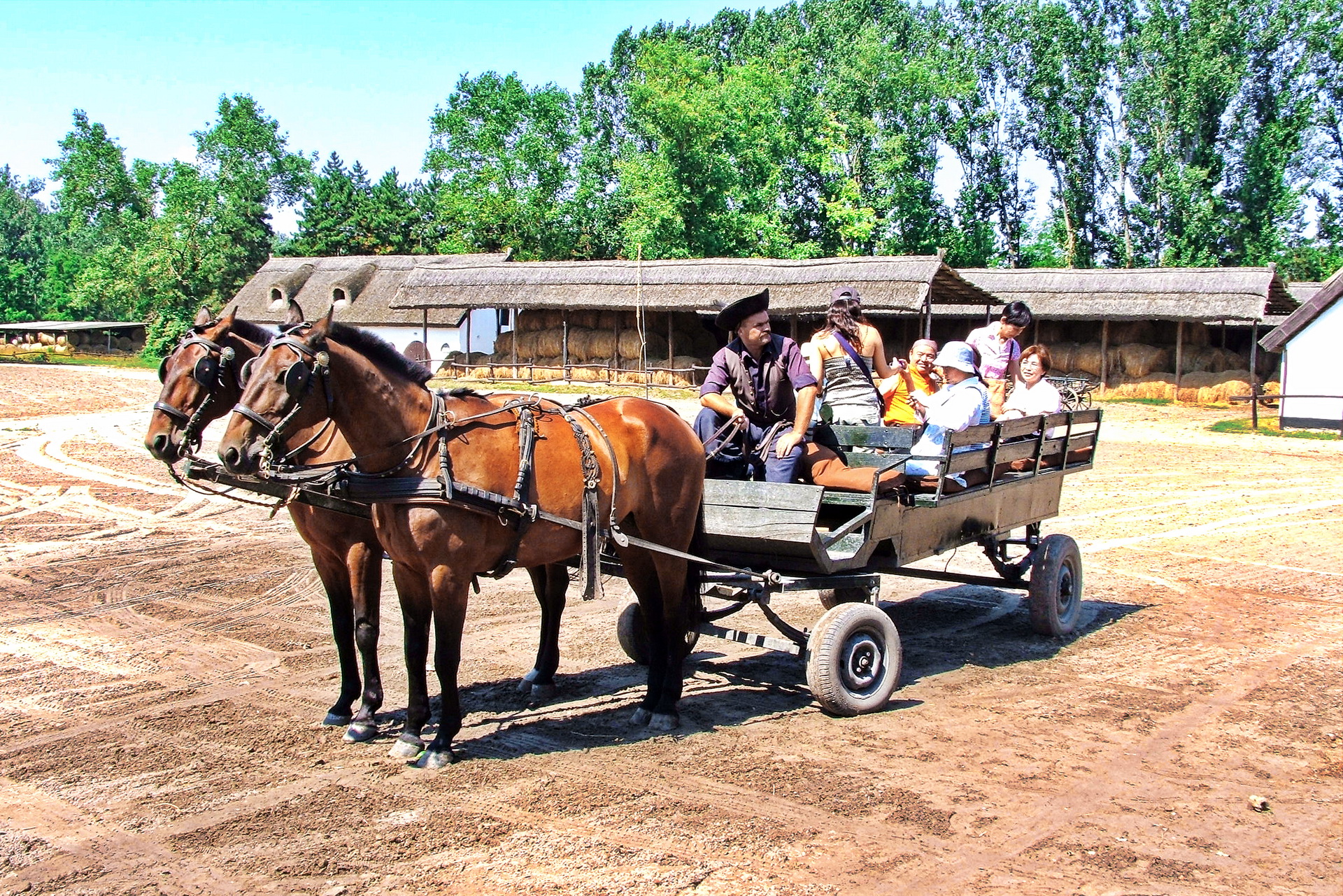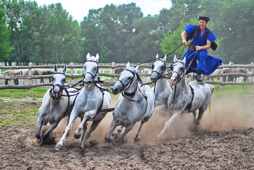 14:00 国立公園の中ではハンガリー原産の灰色牛、よじれ角を持つラツカ種の羊、バイソンの群れが放し飼いになっています。そして300年前からハンガリー特産の馬、ノーニウス種もここで放牧されています。馬車に乗って、これらの動物をご覧いただき馬術ショーもお楽しみいただけます。その後、ブダペストへ帰ります。