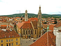 Proceed to Sopron (29 km). Walking city tour in the historical center of Sopron. (Fire Tower, Storno House, Goat Church, etc.) Coffee break at the renaissance style court of the Eggenberg House.